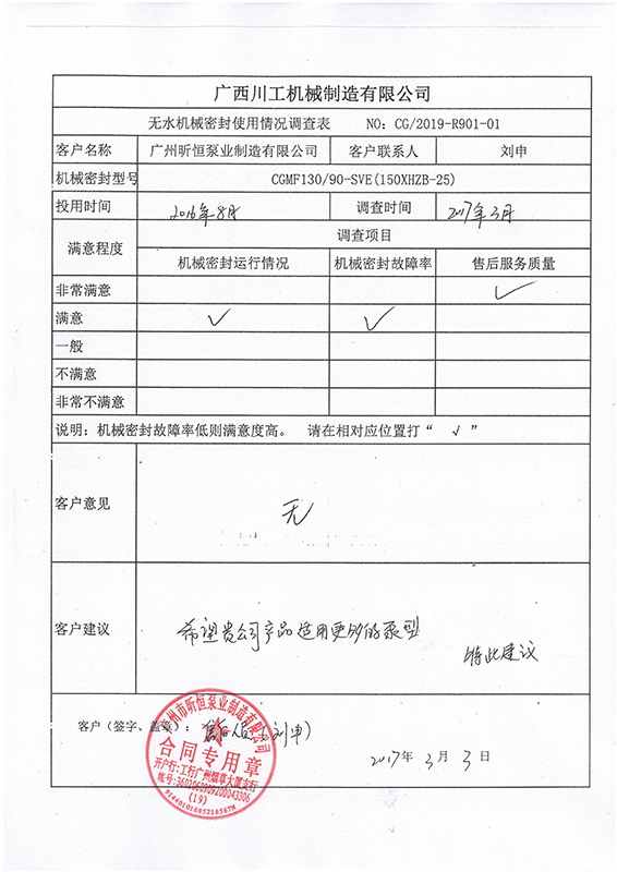 白銀泵用機械密封